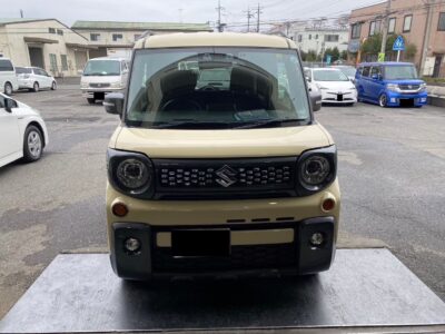 茨城県古河市在住のお客様より、スズキ スペーシアギアの右前部損傷修理のご依頼をいただきました。