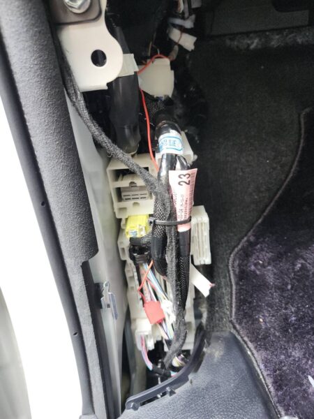 お客様のご要望は「寒い冬や暑い夏に、乗車前から快適な温度にしたい」というものでした。車両の配線やコンピュータ制御を確認し、対応可能なリモートスタートシステムを選定しました。