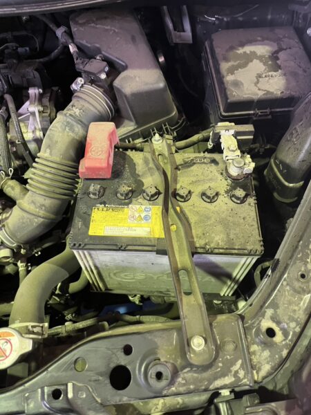 始動性が悪く、メーター内に警告灯が点灯することがあったため、点検を実施。バッテリーの劣化が確認されました。