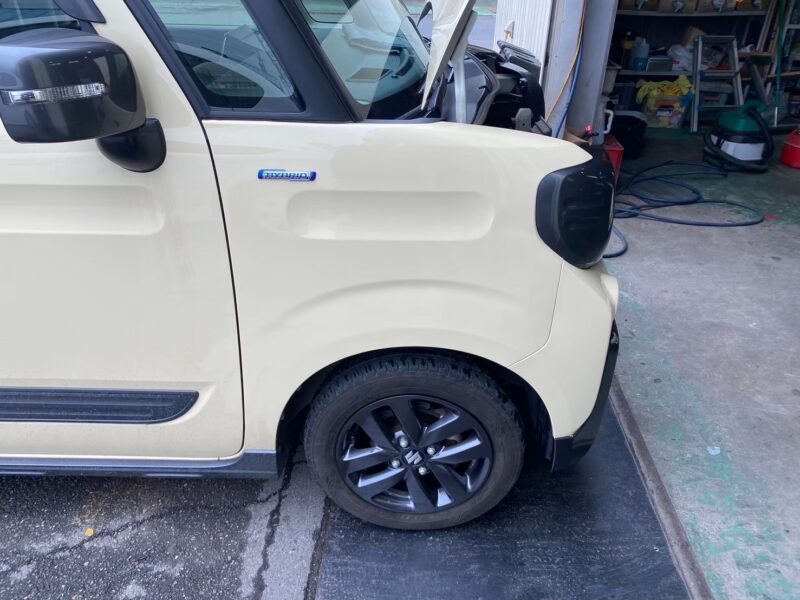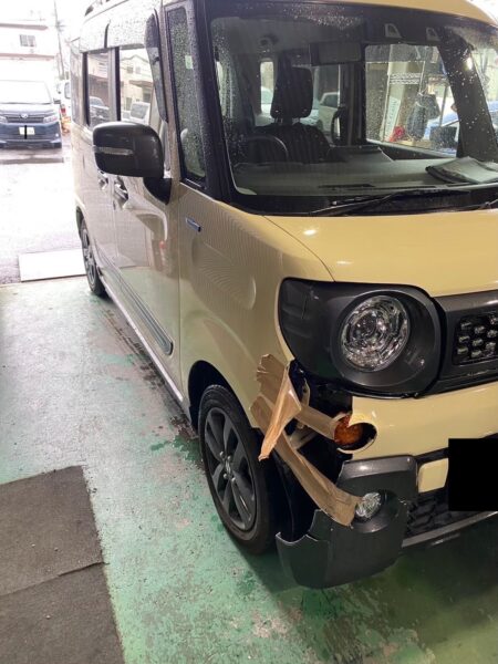 茨城県古河市在住のお客様より、スズキ スペーシアギアの右前部損傷修理のご依頼をいただきました。